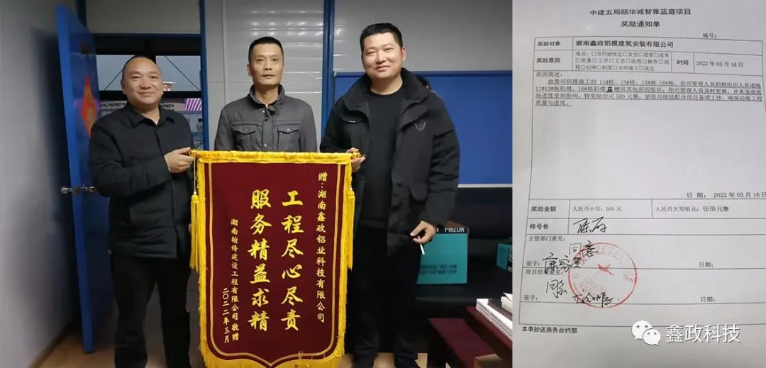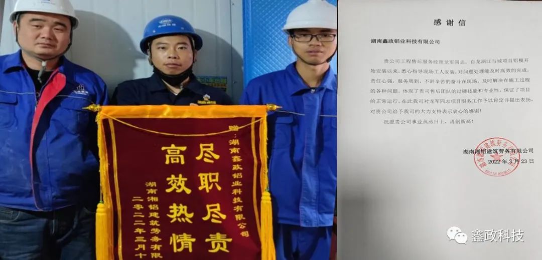 榮譽(yù)源自信任,信任源自擔(dān)當(dāng)。錦旗既是對(duì)鑫政集團(tuán)的鼓勵(lì)也是一種鞭策,集團(tuán)未來(lái)將繼續(xù)以優(yōu)質(zhì)服務(wù)貫穿始終,以客戶需求為導(dǎo)向,以客戶滿意為目標(biāo),進(jìn)一步完善現(xiàn)場(chǎng)技術(shù)服務(wù)體系,提升技術(shù)服務(wù)人員專業(yè)能力,切實(shí)保障項(xiàng)目進(jìn)度高效執(zhí)行,讓客戶樂(lè)享“鑫”服務(wù),為客戶創(chuàng)造“鑫”價(jià)值,與客戶共創(chuàng)“鑫”輝煌。